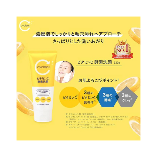 [بكج من عبوتين] غسول وجه CYCLEAR لتنظيف وترطيب البشرة | بخلاصة زيت الكومانو و4 أنواع من فيتامين سي | سعة 130غم | صنع في اليابان