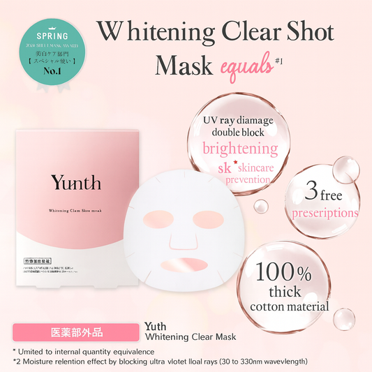 [بكج من طردين 12 ماسك] ماسك تفتيح وترطيب البشرة من Yunth - تركيبة غنية بالمواد الطبيعية الآمنة على البشرة - صنع في اليابان -