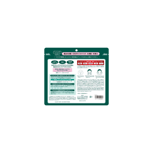 ماسك Clear Turn | بخلاصة CICA والمكونات الطبيعية | لترطيب وتهدئة وتجديد خلايا البشرة | [بكج اقتصادي من 40 قناع] صنع في اليابان