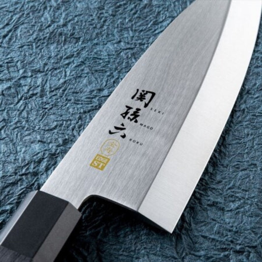سكين Seki Magoroku Kinju ST | من الفولاذ المقاوم للصدأ ومقبض من الخشب المعزز | سكين بحد واحد | عدة أحجام من العلامة التجارية اليابانية Kai | صنع في اليابان