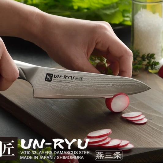 سكين UN-RYU عدة مقاسات | 33 طبقة من الفولاذ الدمشقي عالي الكربون | من العلامة التجارية اليابانية Shimomura صنع في اليابان