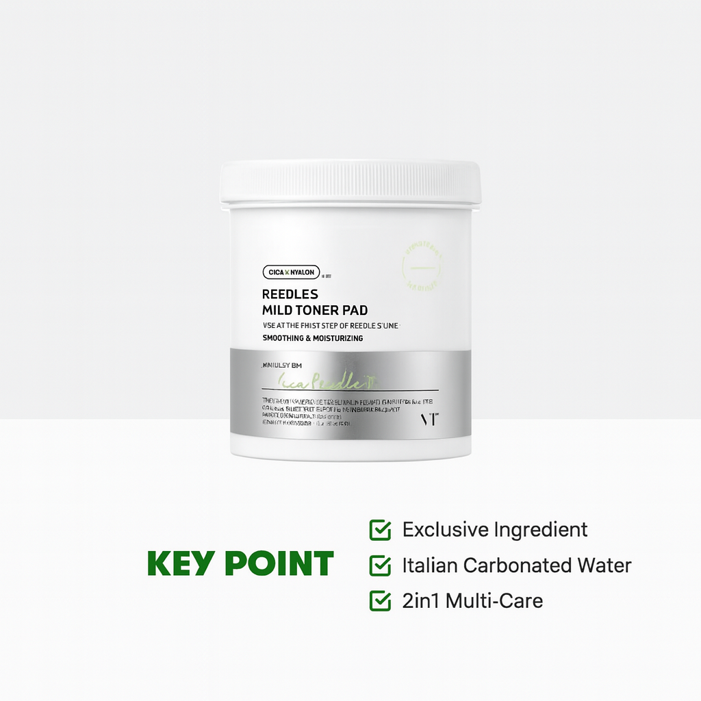 VT Cosmetics Reedle S Mild Toner Pad هو تونر باد لطيف ومتعدد الاستخدامات، صُمم ليكون خطوة أساسية بعد التنظيف، حيث يساعد على تنقية البشرة، ترطيبها، وتحسين ملمسها بطريقة متوازنة تناسب العناية اليومية. مثالي لمن يعانون من انسداد المسام أو عدم انتظام سطح البشرة.