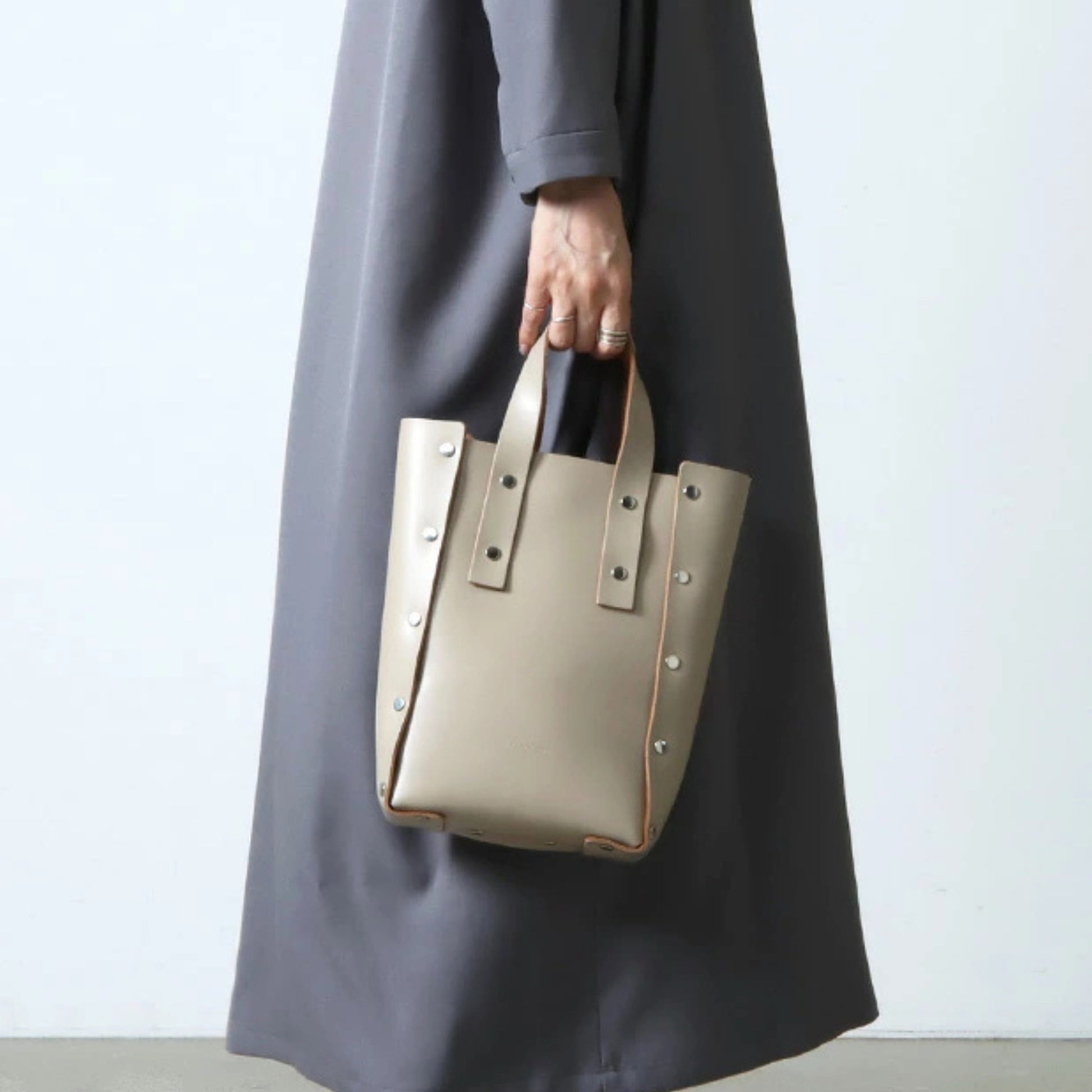 حقيبة Assemble Hand Bag Tall S من سلسلة Assemble هي إحدى التحف المميزة من Hender Scheme. تتميز بتصميمها الفريد الذي يعتمد على تجميع قطع الجلد باستخدام المسامير بدلاً من الخياطة التقليدية، مما يمنحها مظهراً بصرياً استثنائياً. صُنعت من جلد البقر المتين المطلي بطبقة صباغ لامعة تضفي لمسة فاخرة وأنيقة. بفضل حجمها العمودي المثالي، تعد خياراً عملياً لحمل الأساسيات مثل المحفظة والهاتف الذكي.