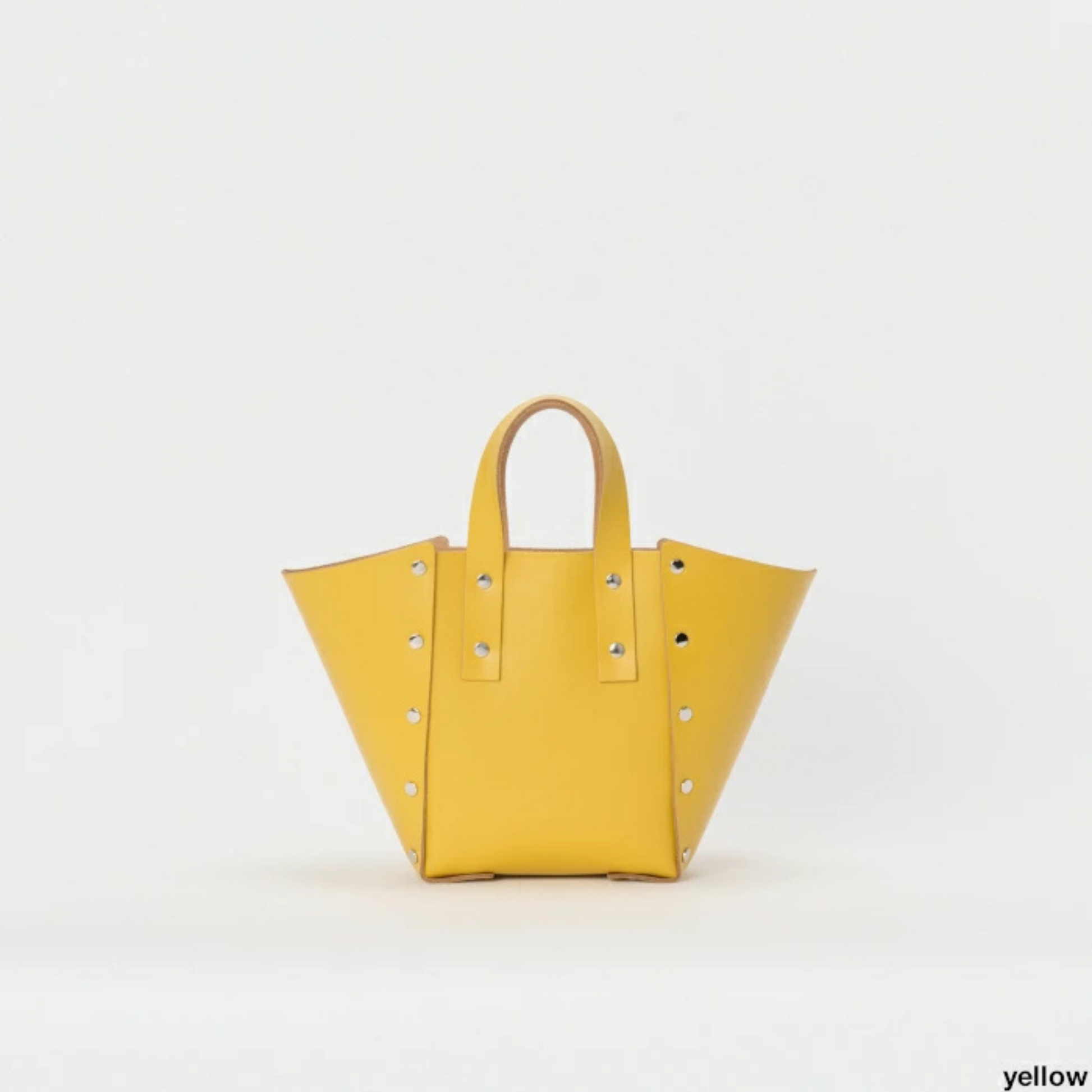 تعتبر حقيبة Assemble Hand Bag Wide S من سلسلة Assemble من Hender Scheme تحفة فنية في عالم الحقائب. تتميز بتصميمها الذي يشبه سلة التوت، حيث جُمعت قطع الجلد بواسطة المسامير عوضًا عن الخياطة التقليدية، مما يمنحها مظهراً جريئاً واستثنائياً. صُنعت من جلد البقر المصقول الذي يجمع بين سطح أملس أنيق وتباين طبيعي بين الجهة الأمامية الملونة والجهة الخلفية غير الملونة.