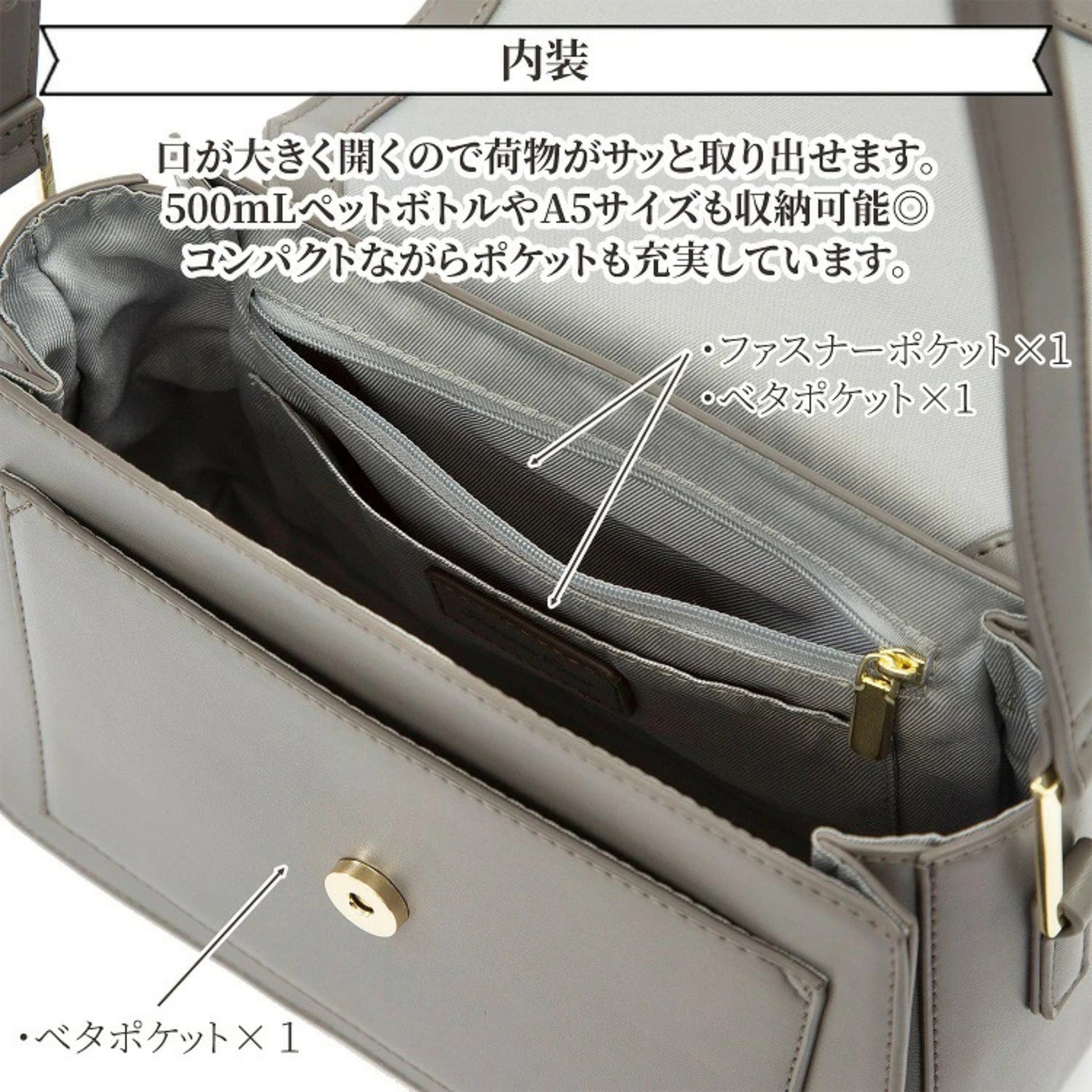 جيب مسطح تحت الغطاء + جيب بسحاب + جيب مسطح إضافي | جيب مسطح على الجانب الخلفي | جلد صناعي – بطانة بوليستر |