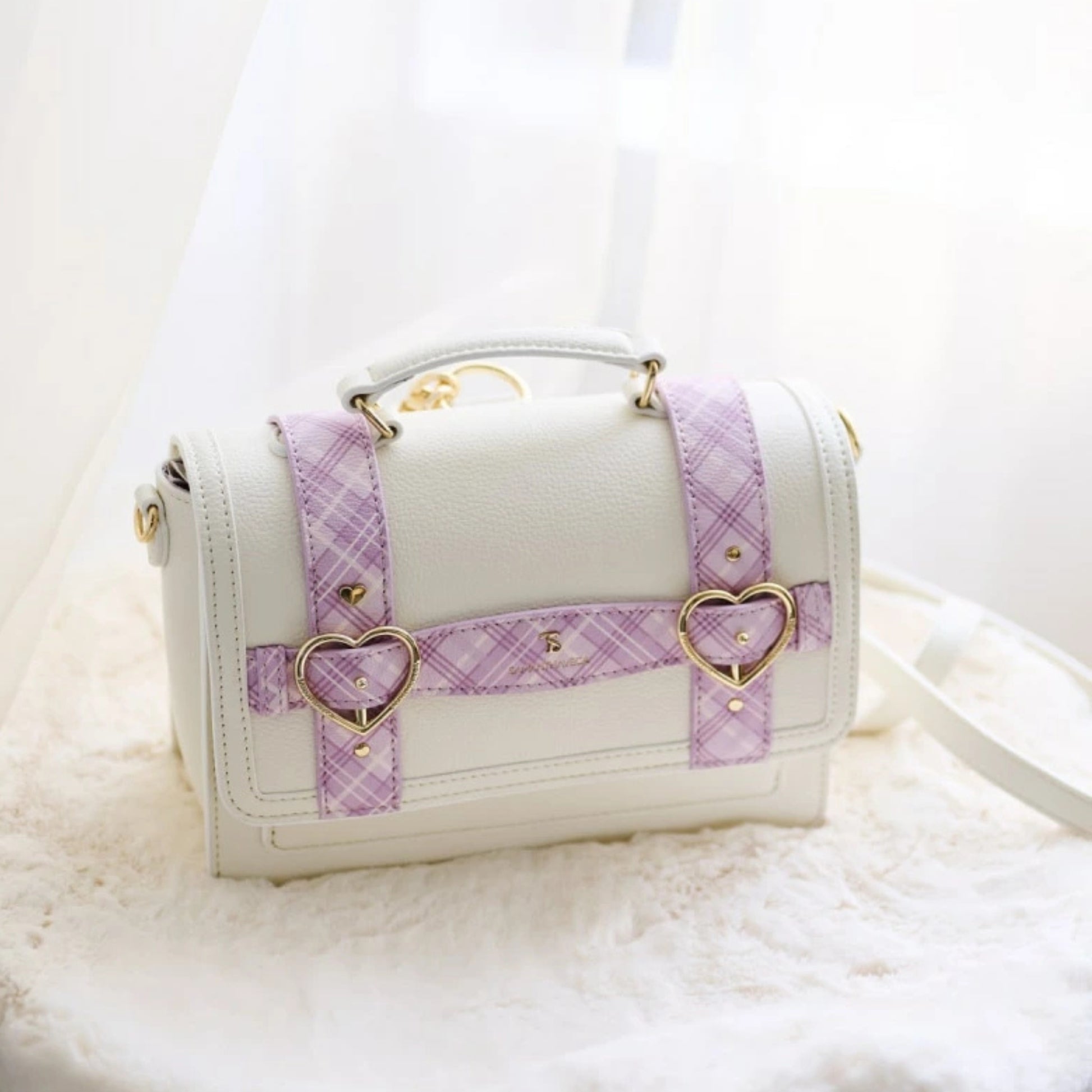 حقيبة أنيقة تجمع بين النمط الكلاسيكي للمربعات مع لمسات عصرية. الحزام ثنائي اللون والمشبك المعدني على شكل قلب يضيفان لمسة أنثوية جذابة، لتكون الحقيبة مثالية للاستخدام اليومي أو المناسبات الخاصة.