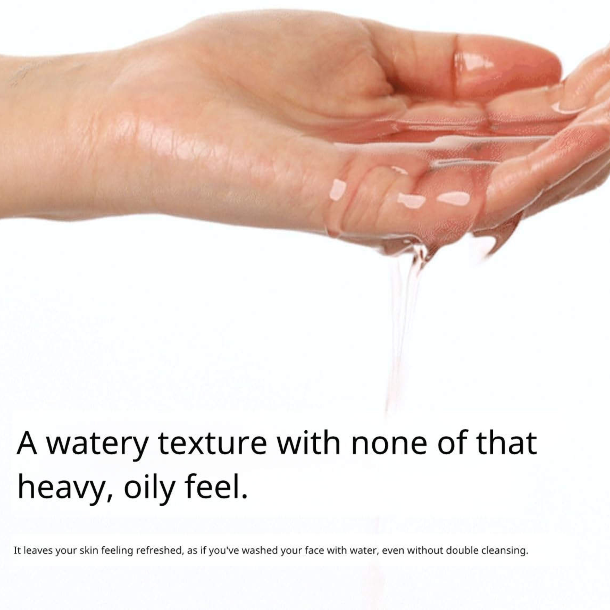 - قوام مائي خفيف: تركيبة خالية من الزيوت الثقيلة، تمنح بشرتك نظافة وانتعاشًا كما لو غسلت وجهك بالماء فقط.