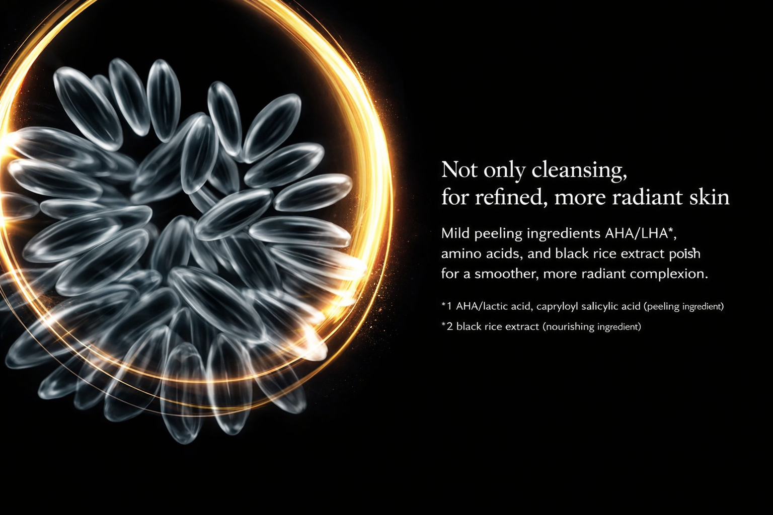- مستخلص الأرز الأسود – غني بالأحماض الأمينية لدعم نعومة البشرة وصحتها.