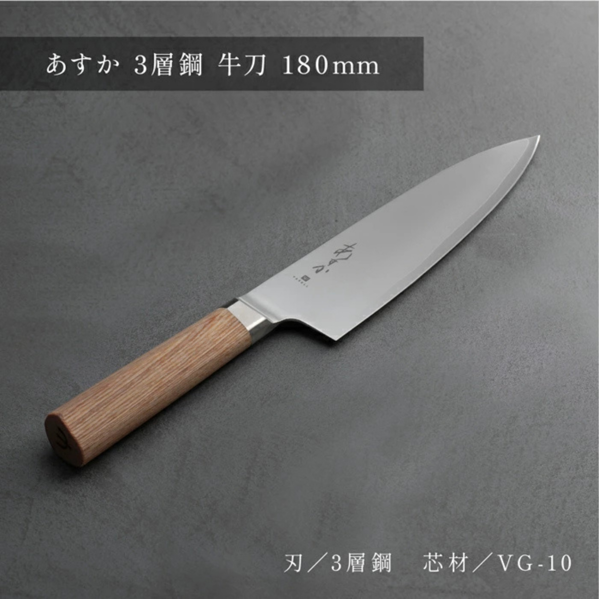 سكين Asuka ثلاثية الطبقات | نواة من الفولاذ VG-10 المحاط بطبقتين من الفولاذ المقاوم للصدأ | مقبض من الخشب الطبيعي | عدة قياسات | من العلامة التجارية اليابانية Yaxell