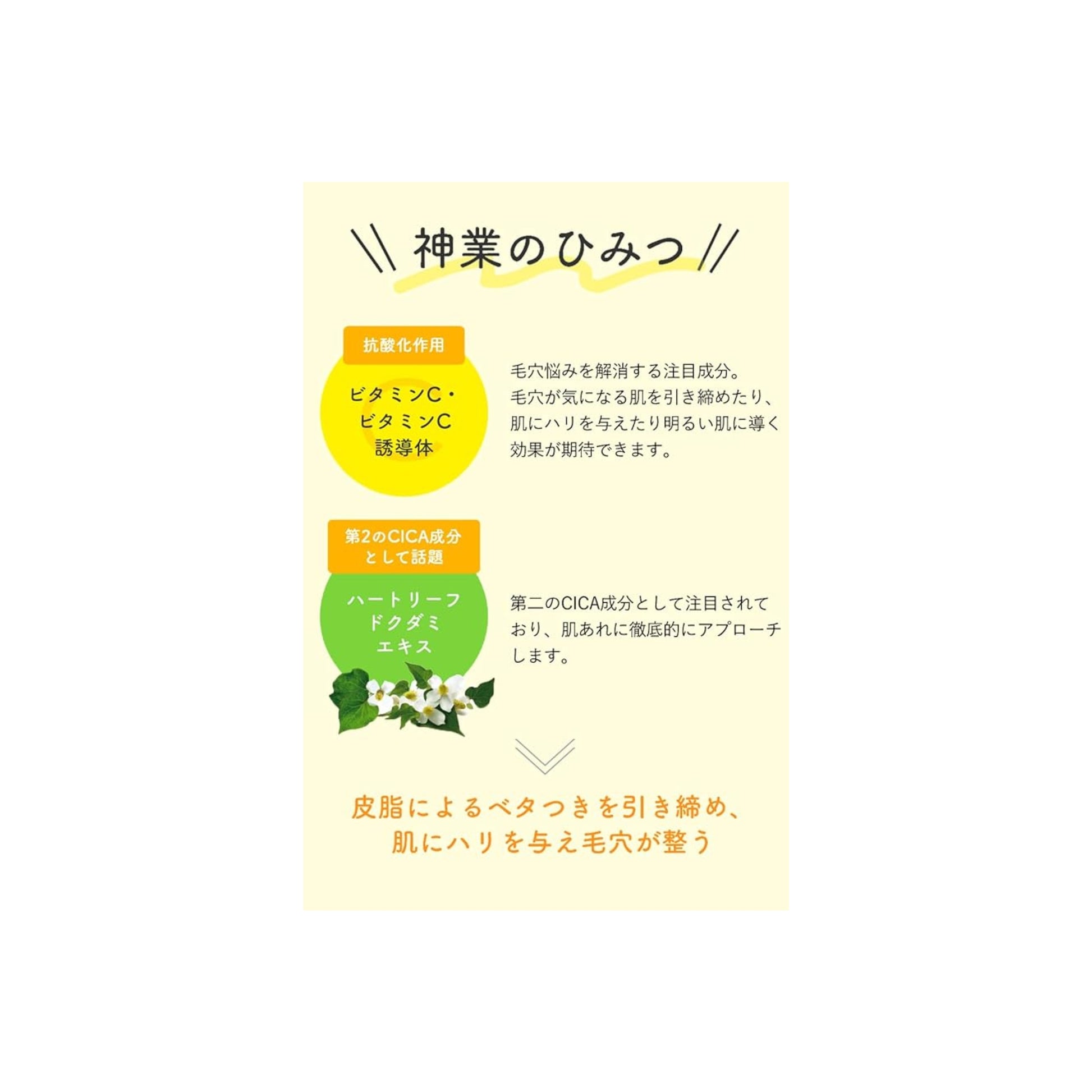 Propandiol, Water, Ascorbic Acid, Dokudami Extract, Laxophila Root Extract, BG, Fragrance