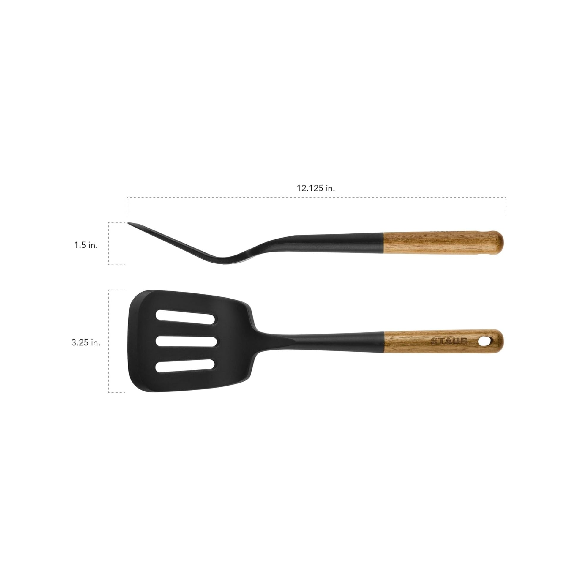 طقم مغارف وكفاكير وأدوات تقليب وطبخ من 6 قطع | من النايلون والسيليكون الصحي BPA-Free ومقبض من خشب الأكاسيا الطبيعي | من العلامة التجارية الفرنسية Staub