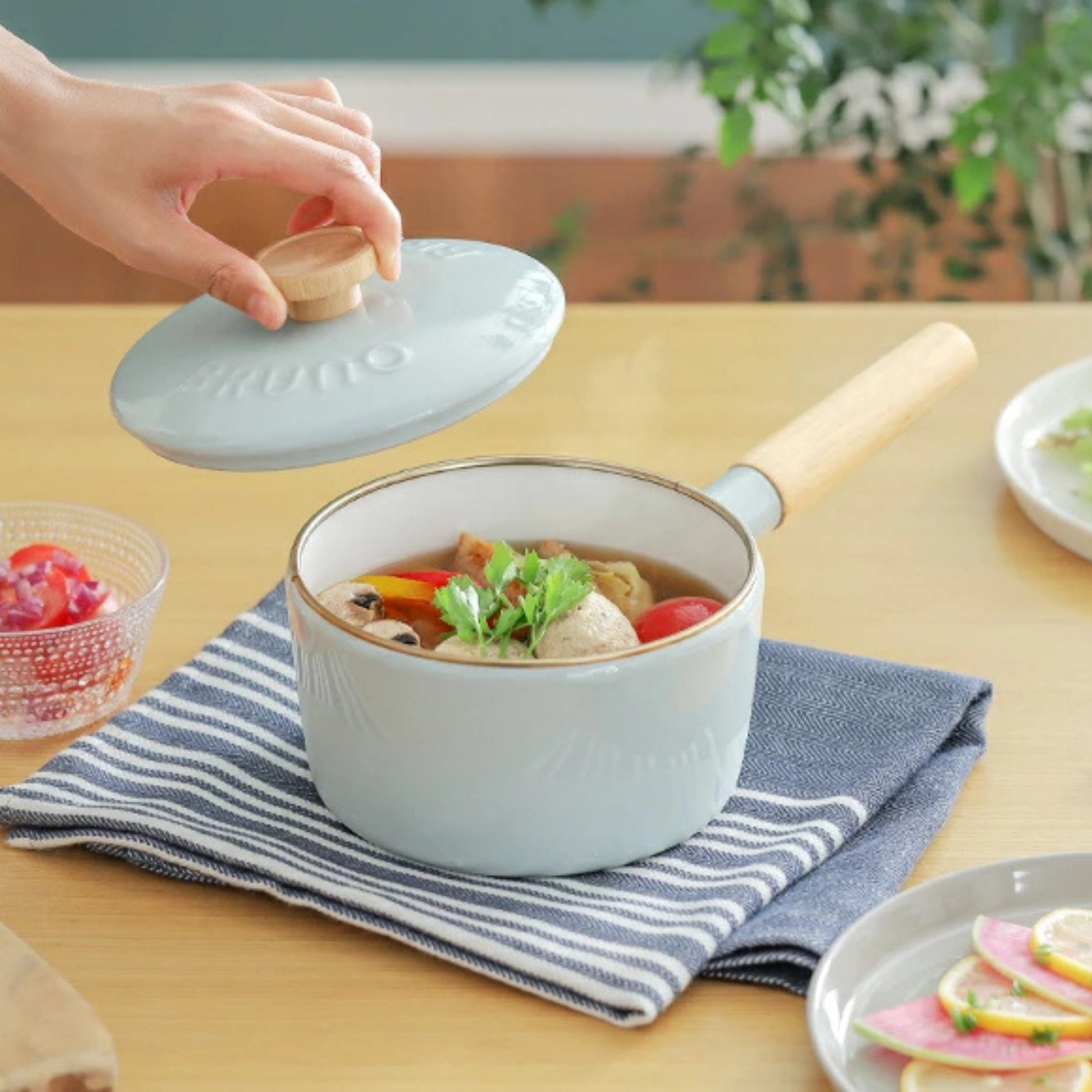كسرولا متعددة الاستعمالات مع غطاء | من الفولاذ المطلي بالمينا عالي الجودة | قياس 16سم سعة 1.6لتر | من العلامتين التجاريتين Fuji Horo و Bruno صنع في اليابان