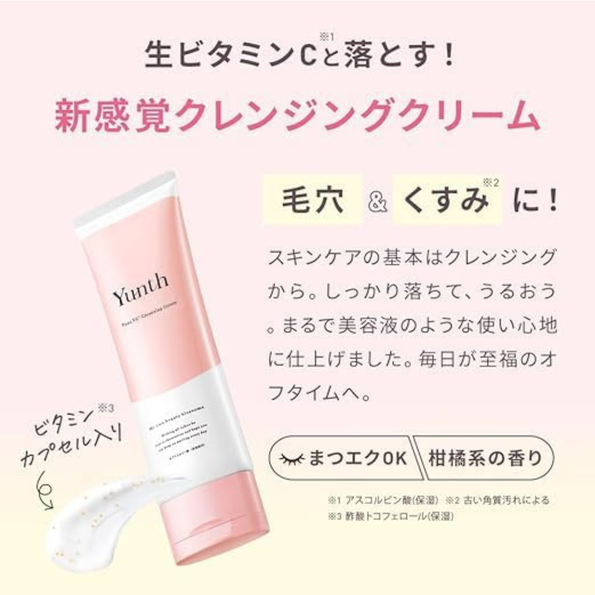 كريم تنظيف البشرة والمسامات من Yunth - تركيبة بخلاصة فيتامين C والعديد من المكونات الطبيعية - لتنظيف البشرة وإزالة المكياج وتنظيف المسامات وترطيب البشرة - صنع في اليابان