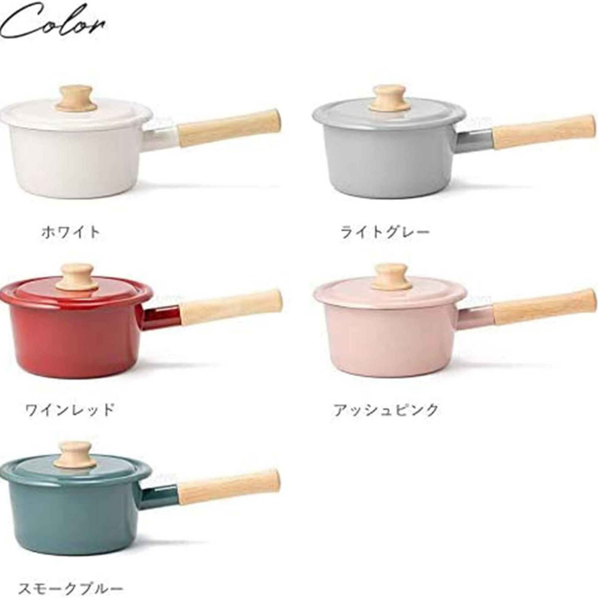 قدر صغير بذراع وغطاء | من الفولاذ المطلي بالمينا ومقبض وذراع من الخشب الطبيعي | عدة ألوان جذابة وقياسين 14سم و 18سم | من العلامة التجارية اليابانية Fuji Horo