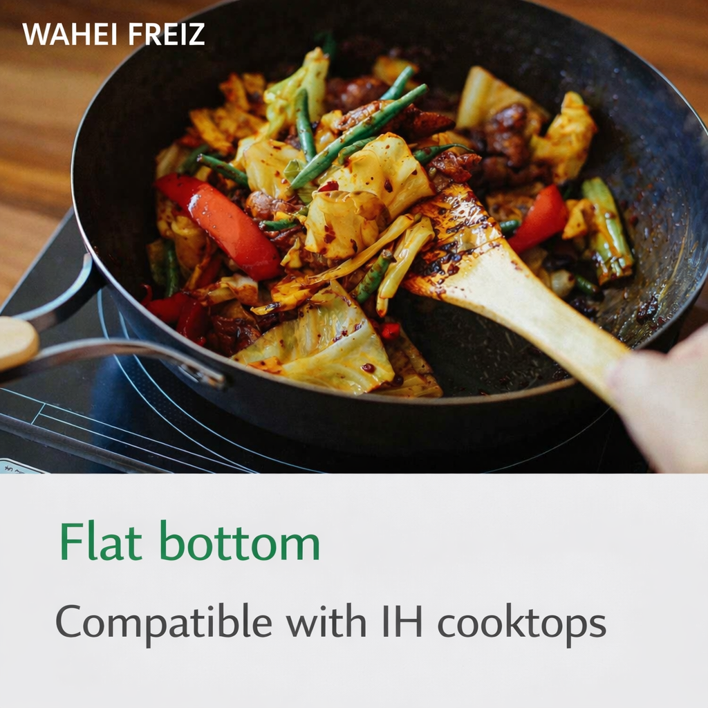 - وزن خفيف وسهل التحكم: تم تطويره ليكون مناسبًا للرجّ والقلي السريع (Wok Tossing) دون عناء، حتى لمن يجدون الأواني الحديدية الثقيلة غير عملية.