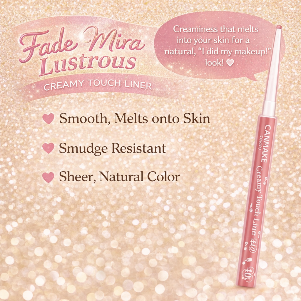 Canmake Creamy Touch Liner 16 هو آيلاينر جل بقلم فائق النحافة 1.5mm يمنحك رسمة دقيقة جدًا بثبات عالي. يتم تصنيعه بطريقة Pour-in Method التي تعطي ملمسًا كريميًا “ذائبًا” ينزلق بسهولة فوق الجفن دون شد أو تقطيع.