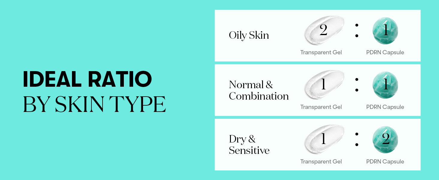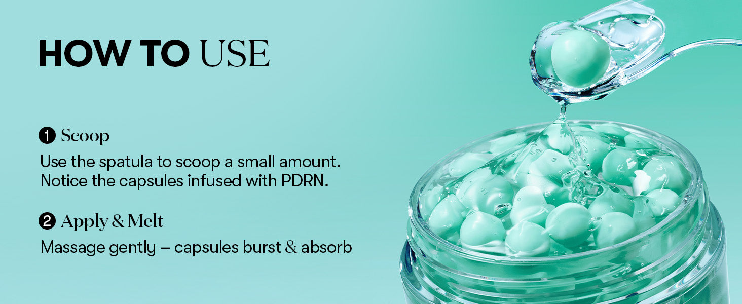 - تركيبة مزدوجة تجمع بين كبسولات PDRN المركّزة وجل مرطّب خفيف.