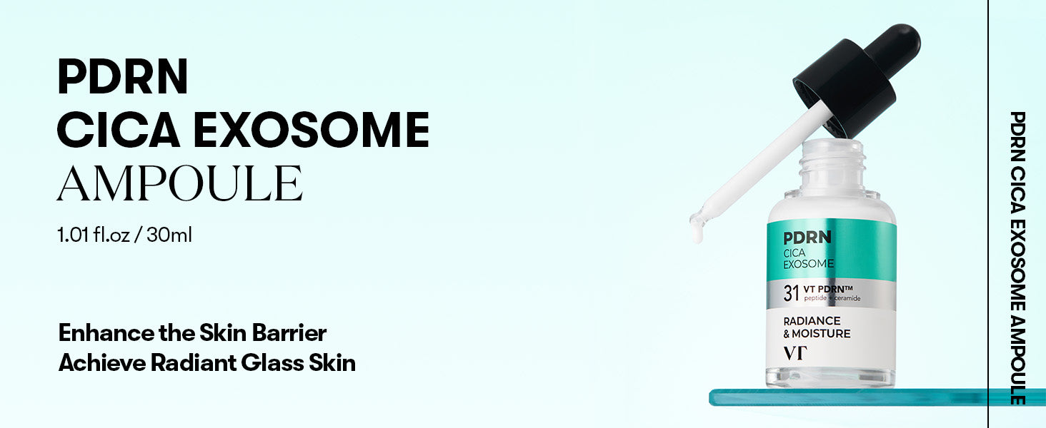 VT COSMETICS PDRN+ CICA Exosome Ampoule Serum 30ml – سيروم شدّ البشرة بمستخلص الجنسنغ الكوري، ببتيد وسيراميد، لمقاومة التجاعيد، ترطيب عميق، إشراقة طبيعية، مناسب لجميع أنواع البشرة - صنع في كوريا