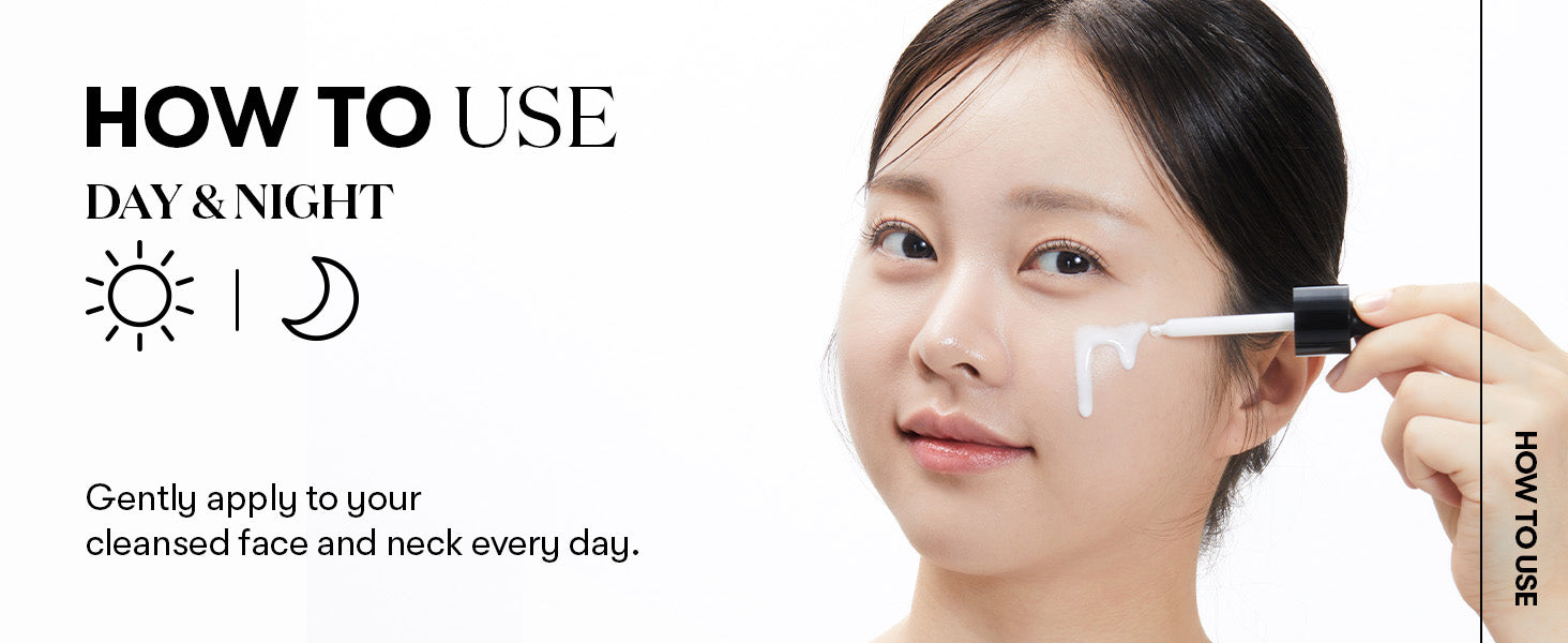 - ضعي كمية مناسبة من السيروم على الوجه والرقبة.